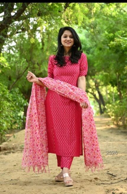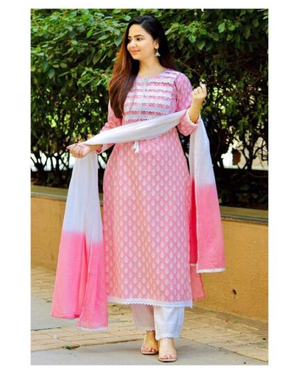 Beautiful Cotton Fabric Embroidery Work Heavy Kurti Pent With Dupatta