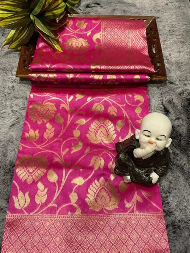 Self Design Kanjivaram Jacquard, Art Silk Saree (Gold, Pink)