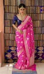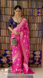 Rashmika Beautiful Art Silk Jacquard Border Saree With Unstitched Blouse For Women Wedding Wear Party and running use also( Include 5.5m Saree and 0.80m Blouse ) Baric jacquard patta. Paired with a matching unstitched blouse piece with similar weaved floral Silk. The length of the blouse is 0.80 meters. Beautiful rich pallu and jacquard work on all over the saree.