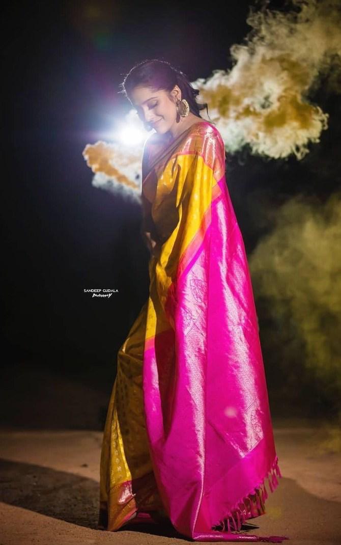 yellow chesta saree