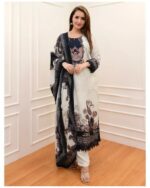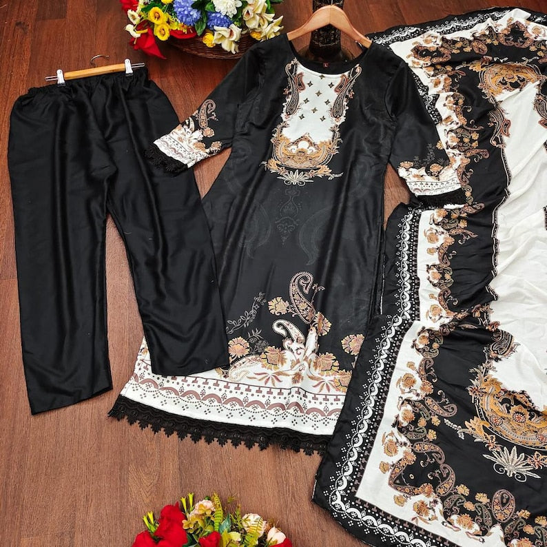 Pakistani Suit which is beautifully decorated with digital prints, sequin embroidery and lace detailing’s all-over. It is absolutely perfect for your upcoming occasions, it is very easy breezy and comfortable.